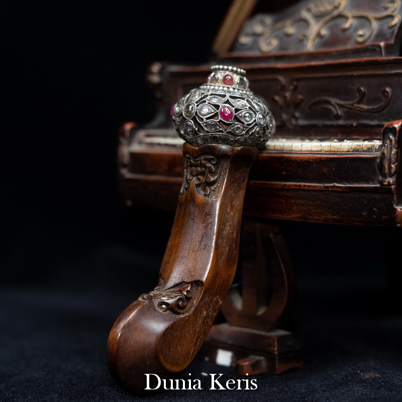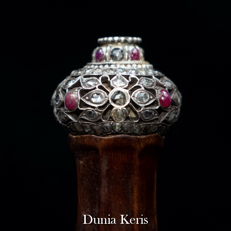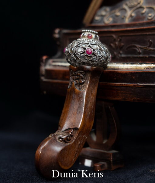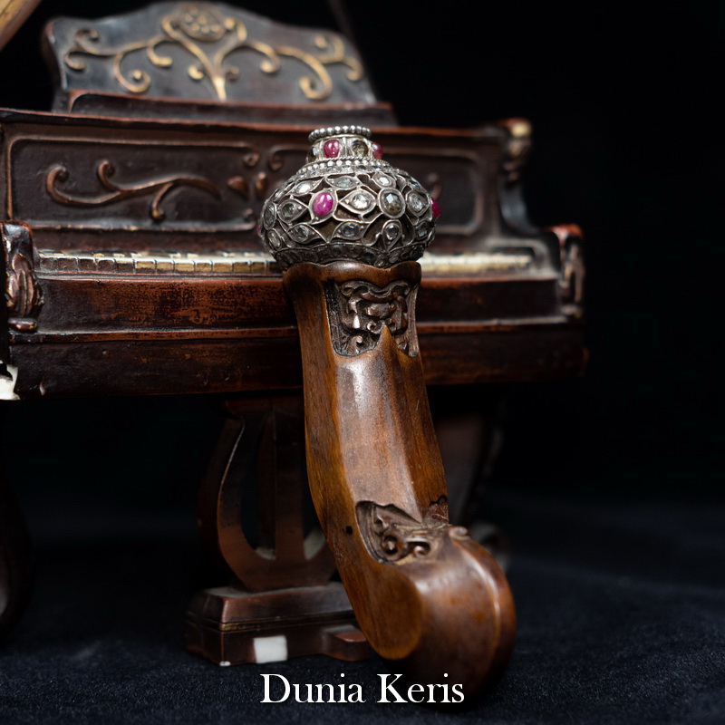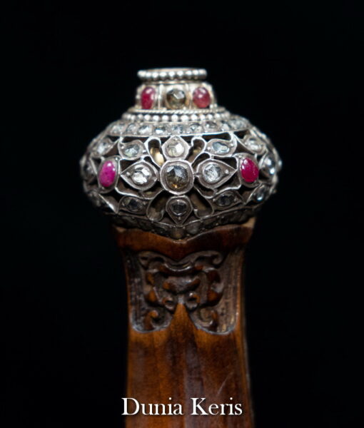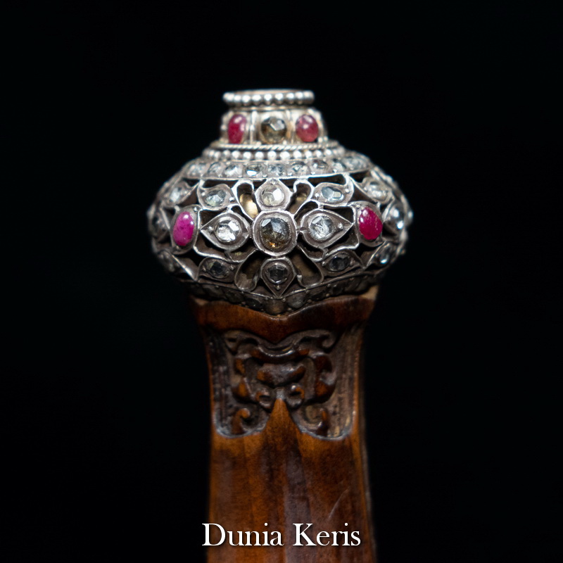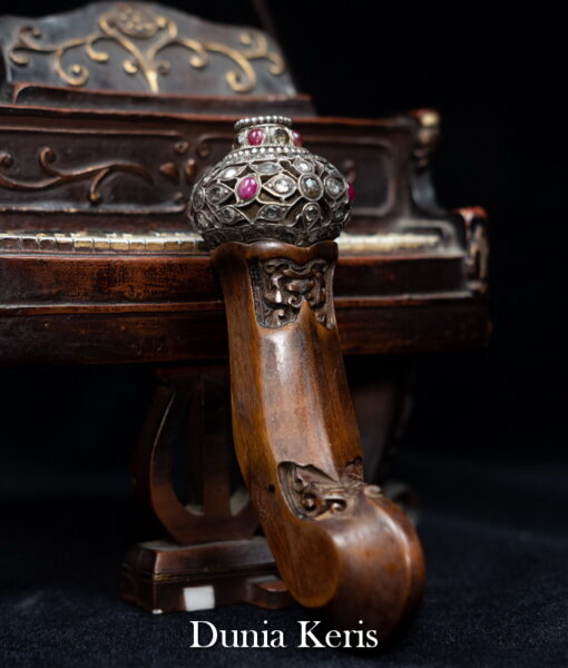 Deder Mendak Selut Krumpul Surakarta berbahan perak asli bertatahkan intan & rubi, dipadukan dengan deder kayu Kemuning Bang pilihan. Perpaduan mewah dan anggun, cocok untuk pelengkap keris koleksi maupun hadiah istimewa.
